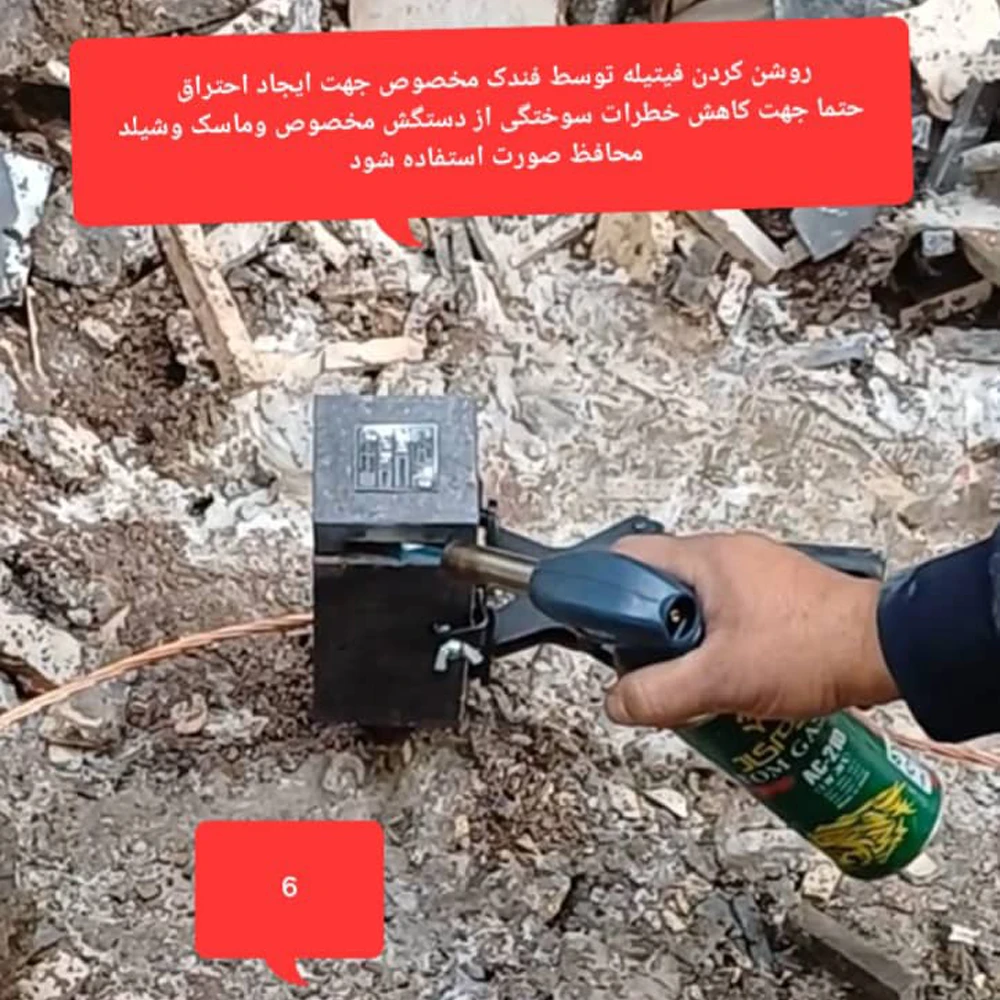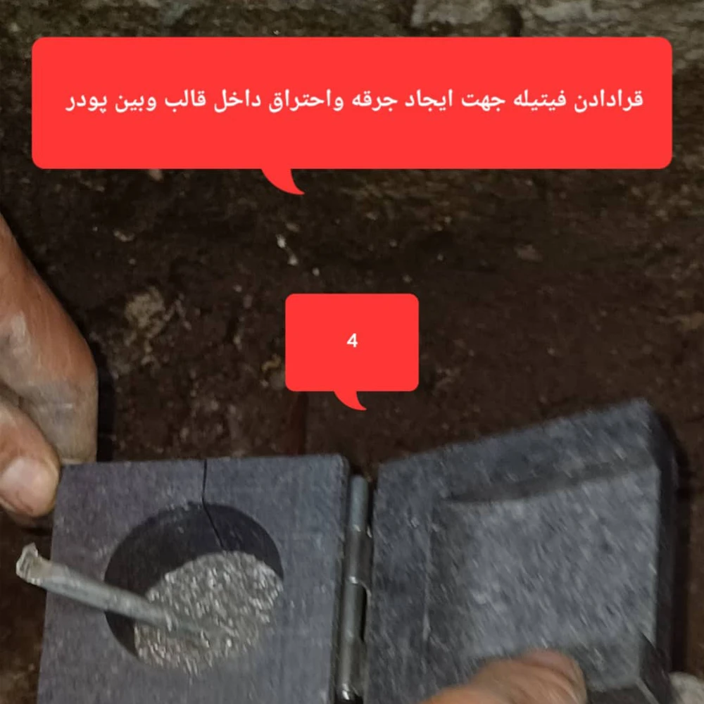 فیتیله احتراق داخل قالب و بر روی پودرها قرار داده میشود تا آغازگر واکنش گرمازا باشد.